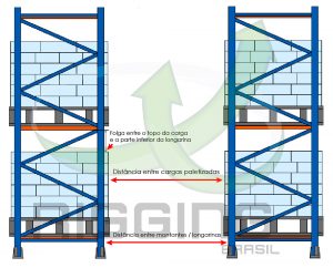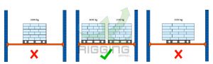 É muito importante que as organizações estabelecem critérios para carregamento das estruturas porta palete, indicando como devem ser aplicadas as cargas e quais as configurações ideais de armazenagem consideradas nos cálculos para instalação como ilustrado abaixo: