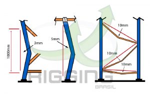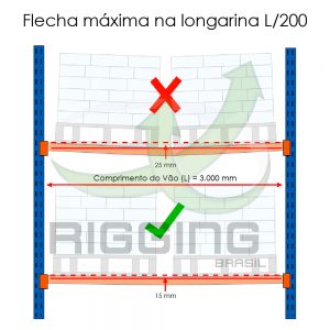 Uma avaliação dimensional deve ser realizada em locais que apresentarem deformações. As deformações máximas admissível em estrutura porta pallete estão descritas na norma ABNT NBR 15524 e são ilustradas abaixo , onde devem ser avaliados os montantes, longarinas e demais elementos estruturais. Um profissional qualificado deve realizar as medições e na indicação de danos acima do apresentado abaixo, deverá inutilizar o equipamento e promover sua manutenção imediata.